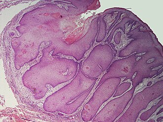 | *Cystic cavity with branching:<ref>{{Cite journal  | last1 = Choi | first1 = YS. | last2 = Park | first2 = SH. | last3 = Bang | first3 = D. | title = Pilar sheath acanthoma--report of a case with review of the literature. | journal = Yonsei Med J | volume = 30 | issue = 4 | pages = 392-5 | month = Dec | year = 1989 | doi =  | PMID = 2697113 | URL = http://www.eymj.org/Synapse/Data/PDFData/0069YMJ/ymj-30-392.pdf }}</ref> | *Cystic cavity with branching:<ref name=pmid2697113>{{Cite journal  | last1 = Choi | first1 = YS. | last2 = Park | first2 = SH. | last3 = Bang | first3 = D. | title = Pilar sheath acanthoma--report of a case with review of the literature. | journal = Yonsei Med J | volume = 30 | issue = 4 | pages = 392-5 | month = Dec | year = 1989 | doi =  | PMID = 2697113 | URL = http://www.eymj.org/Synapse/Data/PDFData/0069YMJ/ymj-30-392.pdf }}</ref> | ||