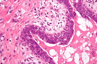 Gynecomastoid hyperplasia. H&E stain. | |